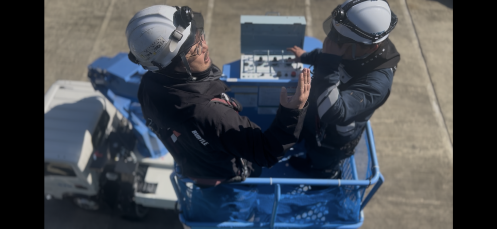寒さ厳しい冬のとある日、弊社では日頃の業務の技術向上のため、高車を使っての操作訓練を行いました。