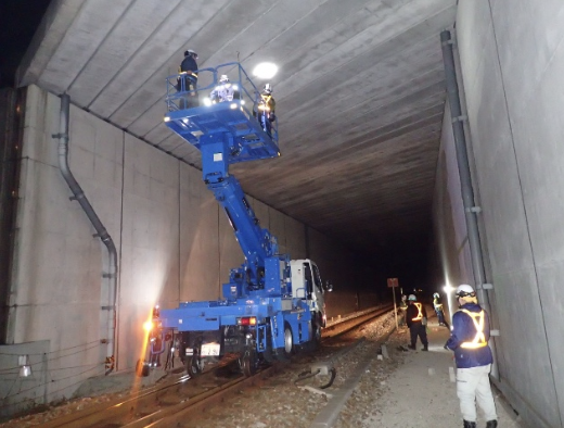トンネルや土工等設備を定期的に検査しています。目視、打音、そして考察し、維持管理に資する報告書を作成しています。近代的なコンクリートのトンネルから歴史を感じるレンガのトンネル、平坦な市街地に築かれた土工等設備から険しい山や谷に築かれた土工等設備と私たちのフィールドは多岐にわたります。